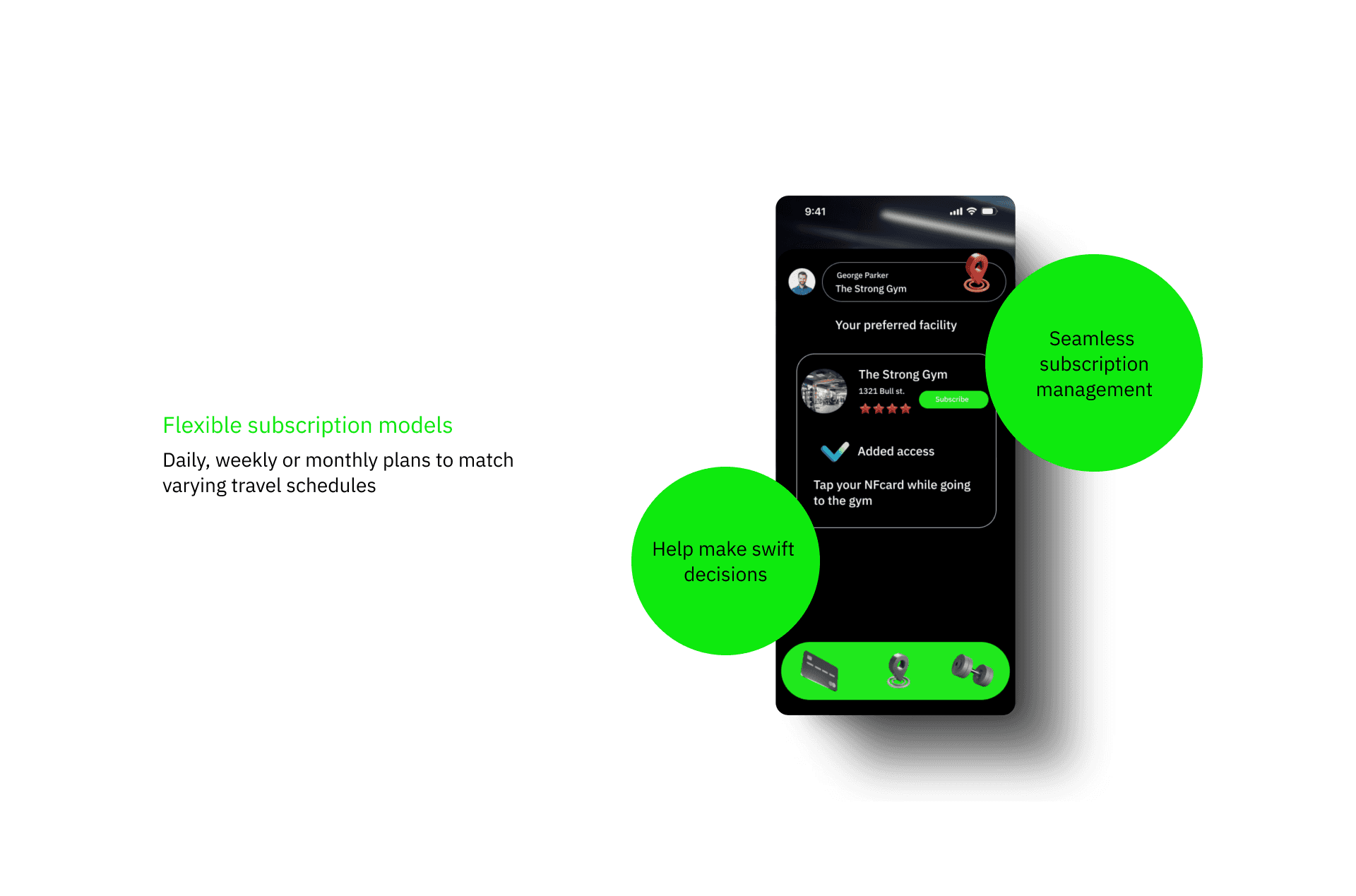 A one-stop fitness access card and AI based application helps manage your subscriptions on the go & enabling seamless entry to gyms, studios, and wellness centers across multiple locations as you go.